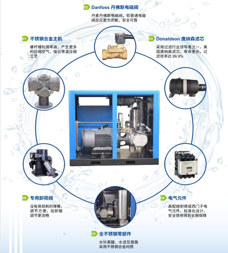 無油水潤滑空壓機是根據壓縮空氣是否含油來劃分的,與之對應的是有油空壓機或微油空壓機。